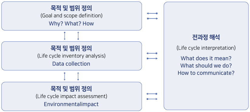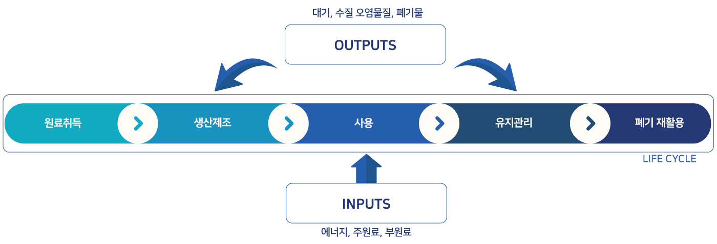 대상 제품이나 공정, 활동의 전과정에 투입, 소모되고 배출되는 에너지 및 물질의 양을 정량화 함